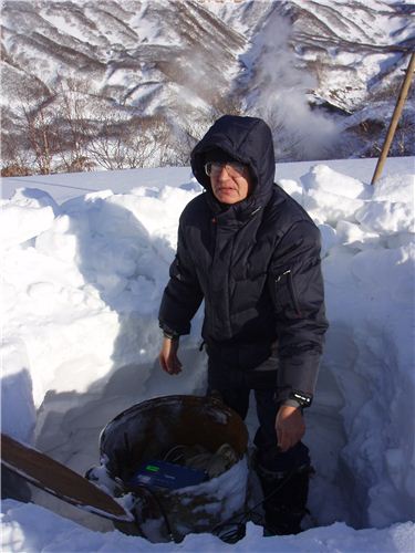 Аппаратура помещена в защитный корпус, изготовленный из металлической бочки. На снимке Евгений Федоров.